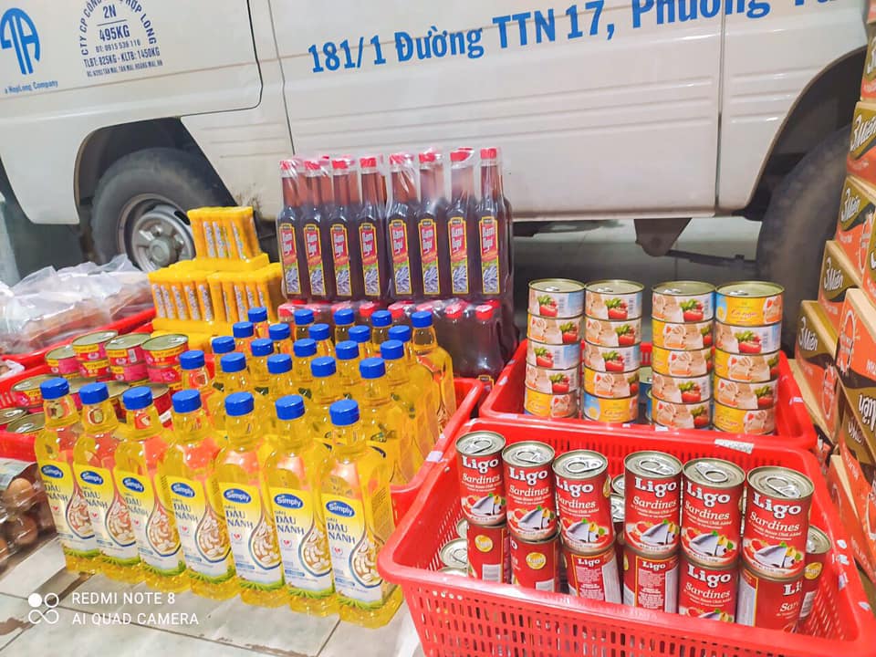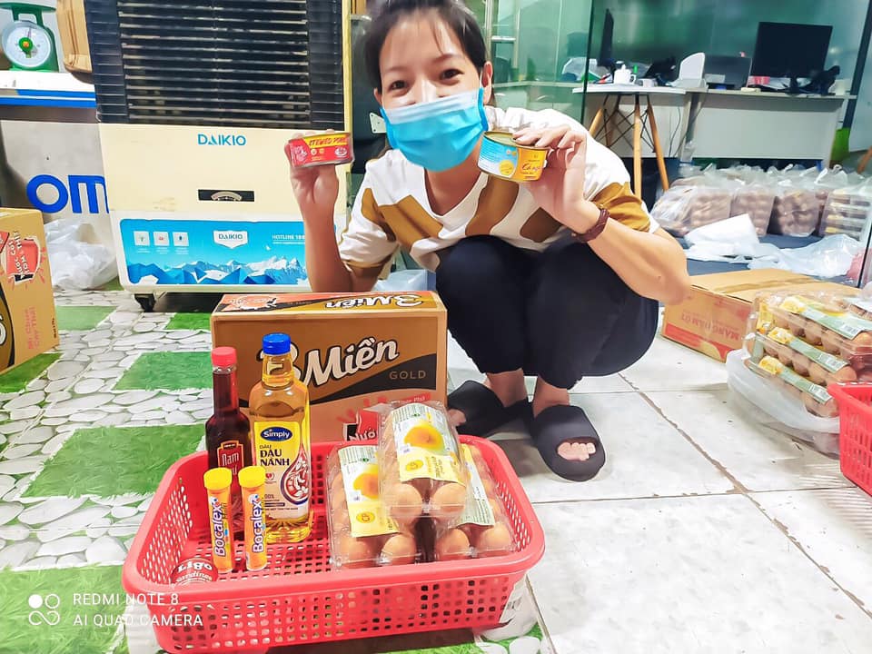 ))). Gửi khẩu trang, nước rửa tay, lương thực thực phẩm, các đồ dùng thiết yếu…. gửi tặng tới nhân viên và đến những vùng bị phong tỏa do dịch bệnh như Hải Dương, Bắc giang, Bắc ninh, Sài gòn….