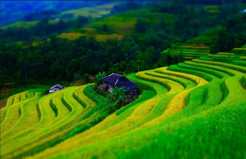 Ruộng Bậc Thang ở đây bà con vẫn chưa gặt, một màu vàng trải dài ra đến tận chân trời bao la trùng điệp, một phần thưởng thực sự xứng đáng khi bạn đến được đây!